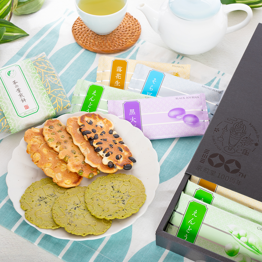 うす焼き煎餅と菜宝楽、食感の異なる二種類を楽しめる商品です。